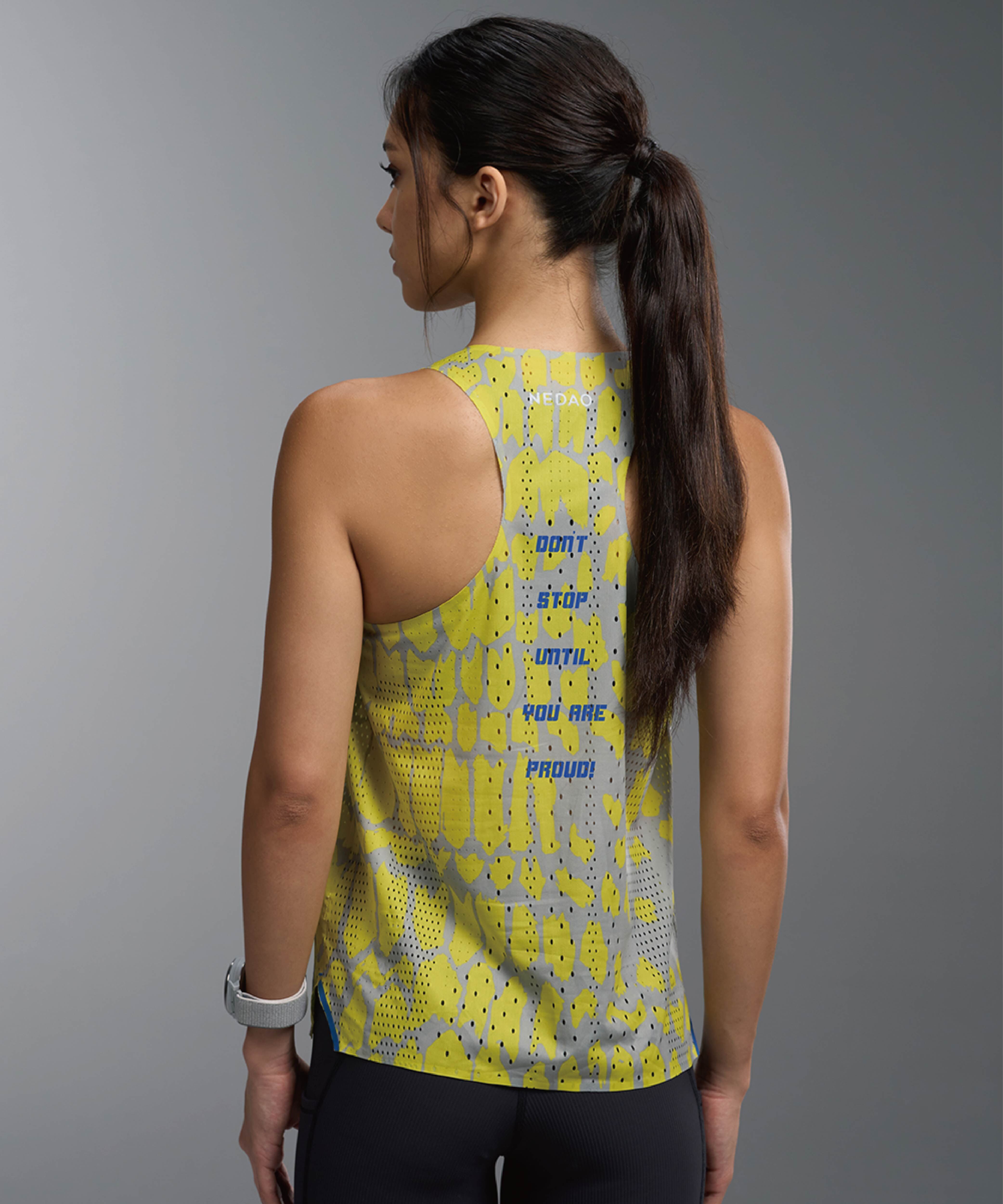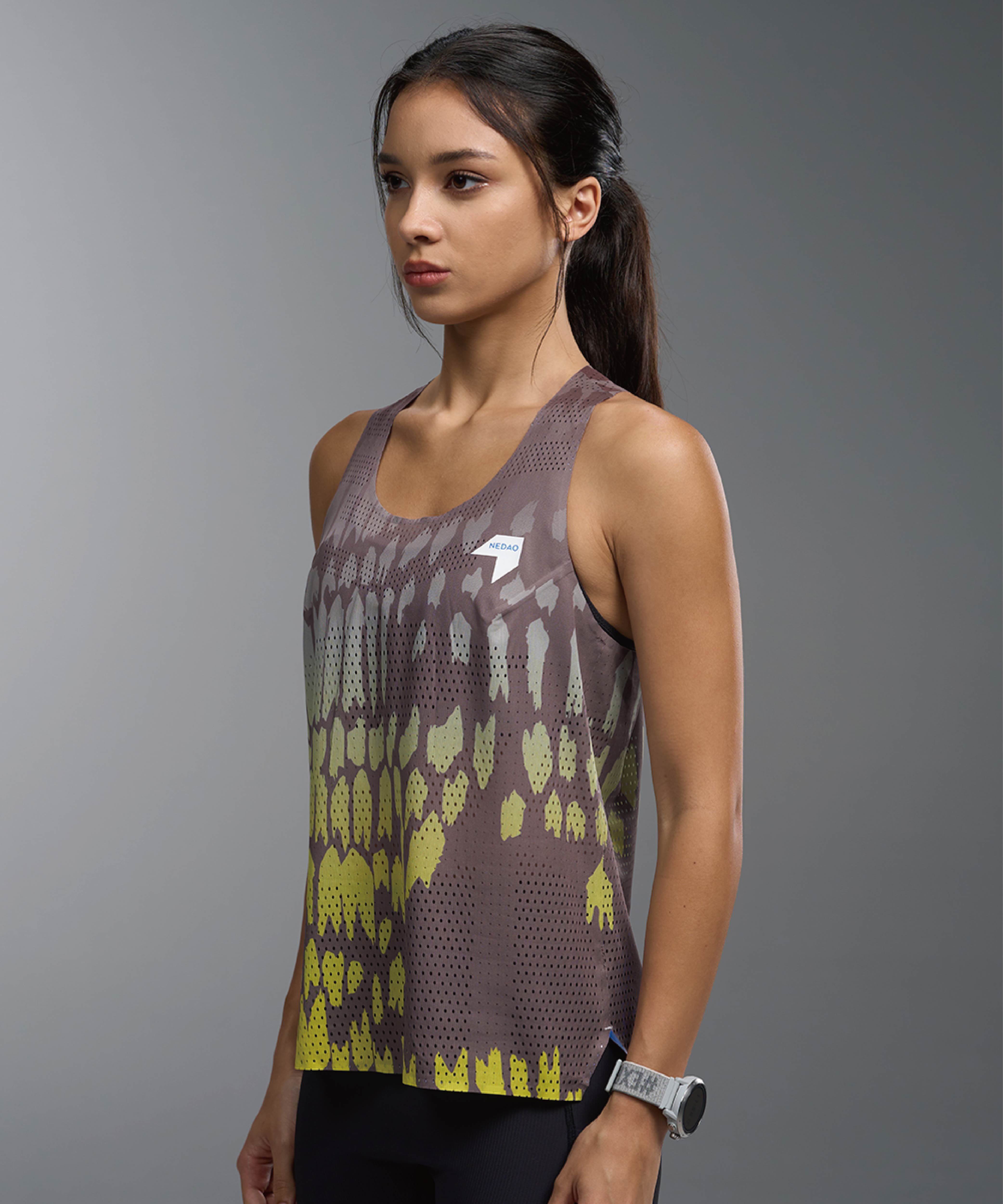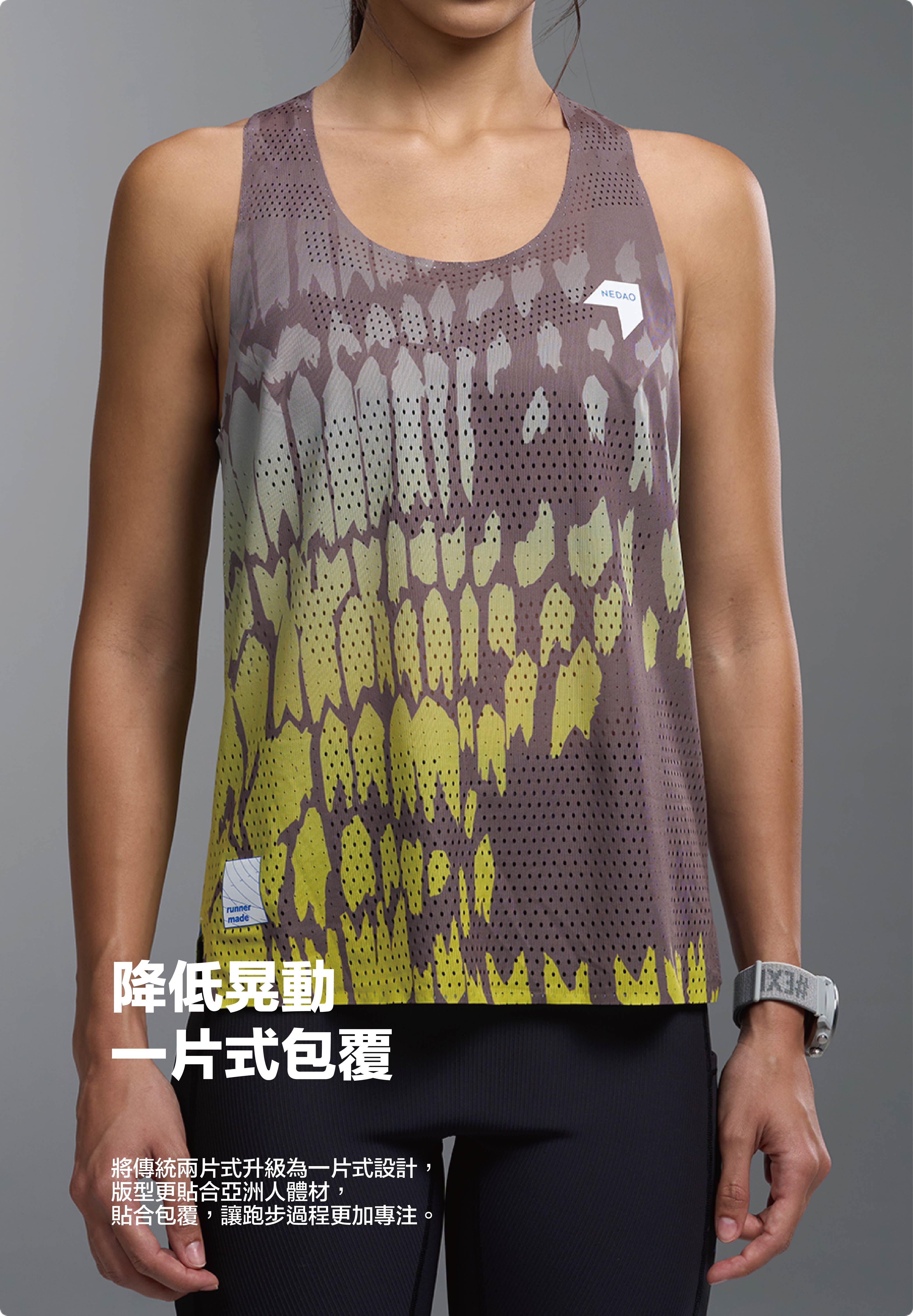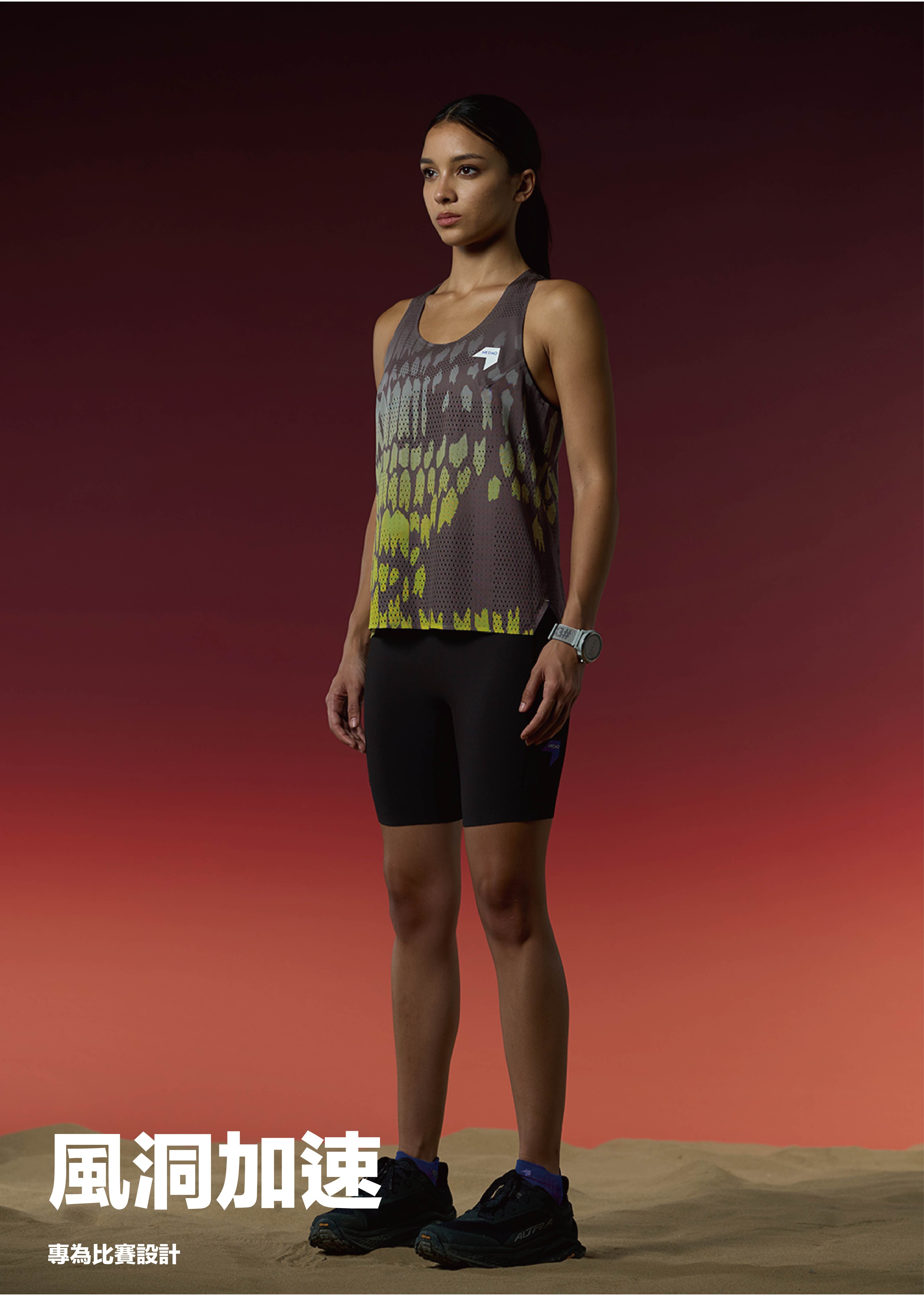 以速度與輕盈為核心打造的 QiFlow Racing Singlet VORTEX 女款版,