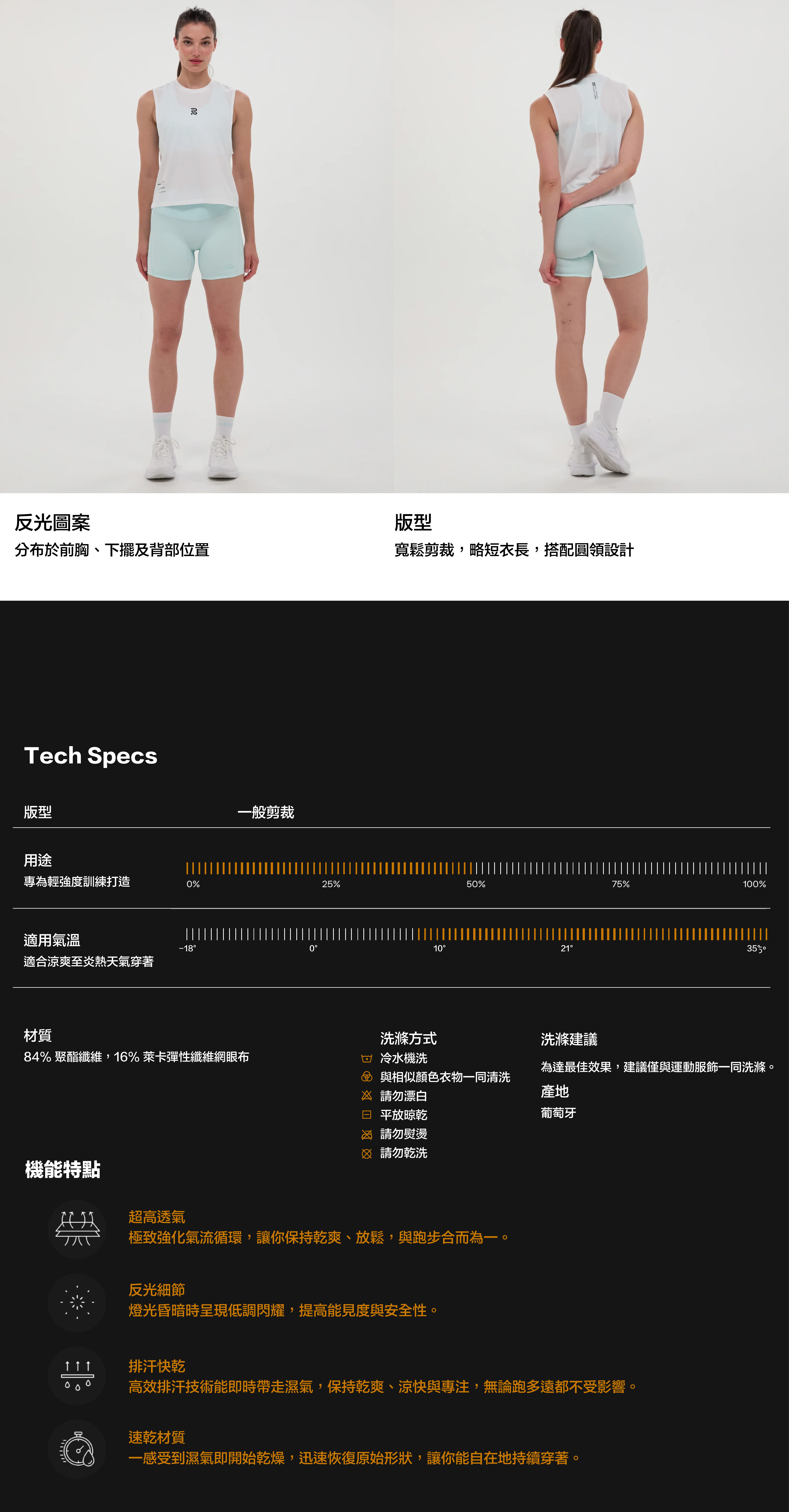 首次於今春推出的 Micromesh™ 女款無袖背心,是一款輕量透氣的訓練層。採用無袖設計與寬鬆版型,略短的衣長搭配圓領剪裁,背部中央設有平鎖縫線。前後皆有低調的反光 Logo 細節,提升夜間能見度。