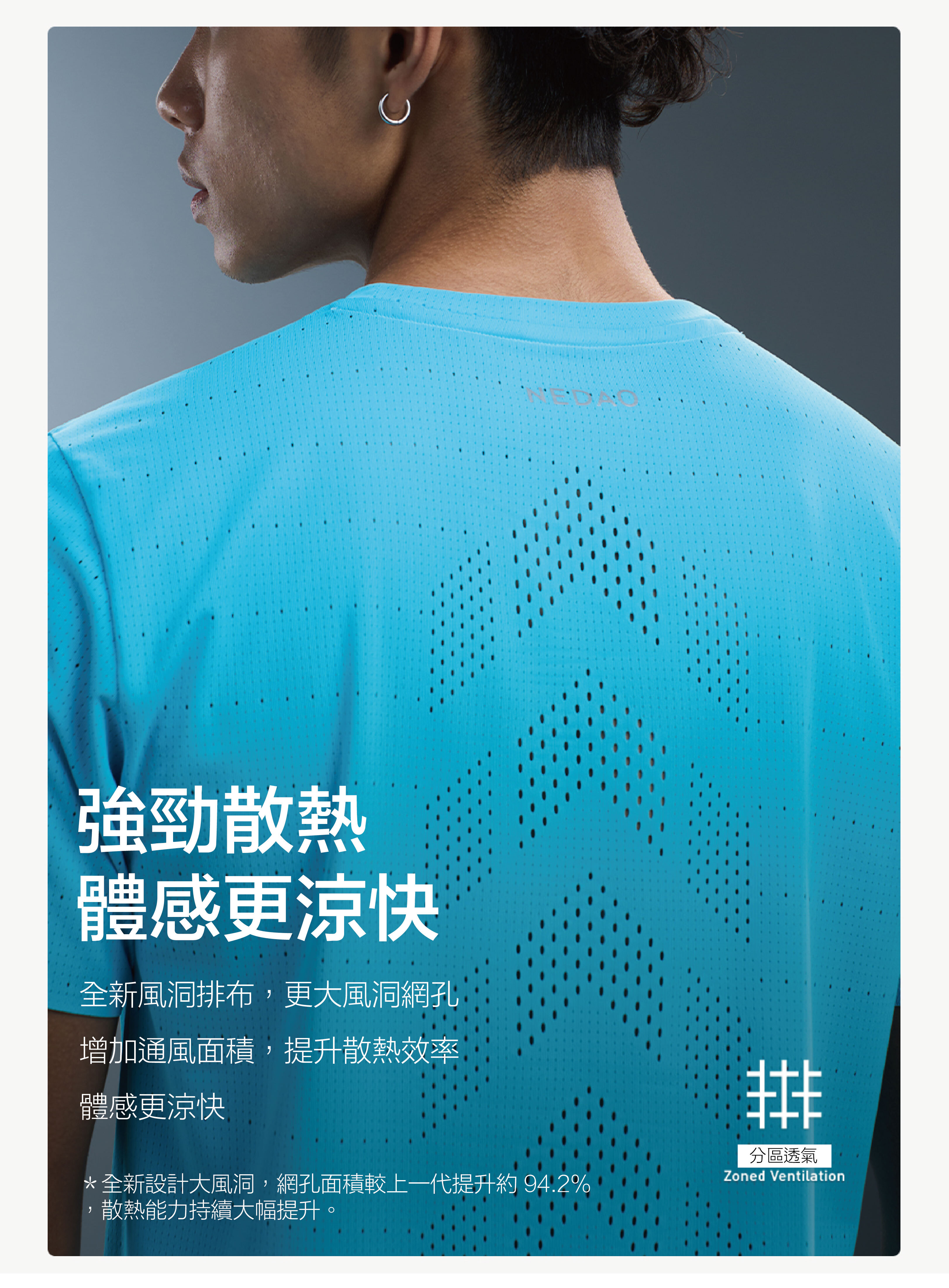 顯著增強氣流循環與散熱效率,讓肌膚持續保持乾爽涼感。