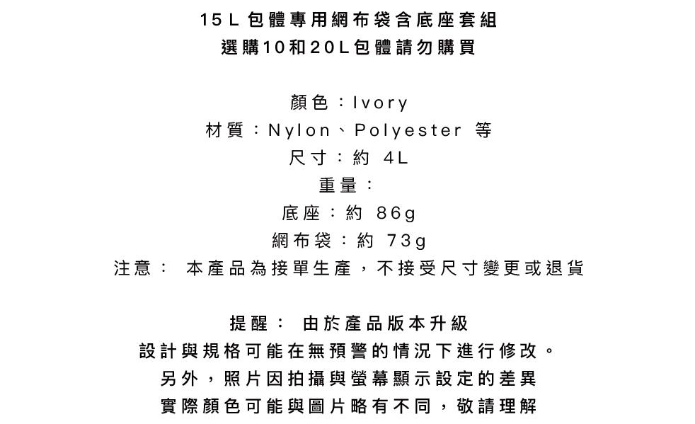 由於本產品為訂製商品,因此恕不接受退貨及尺碼更換。