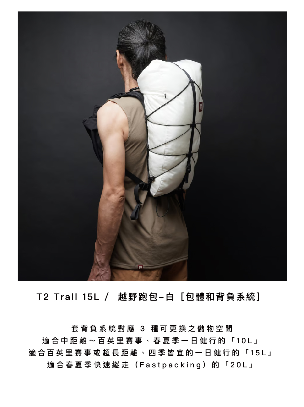 【Tabisuke Tabizo】T2 Trail 15L / 越野跑包-白[包體和背負系統]