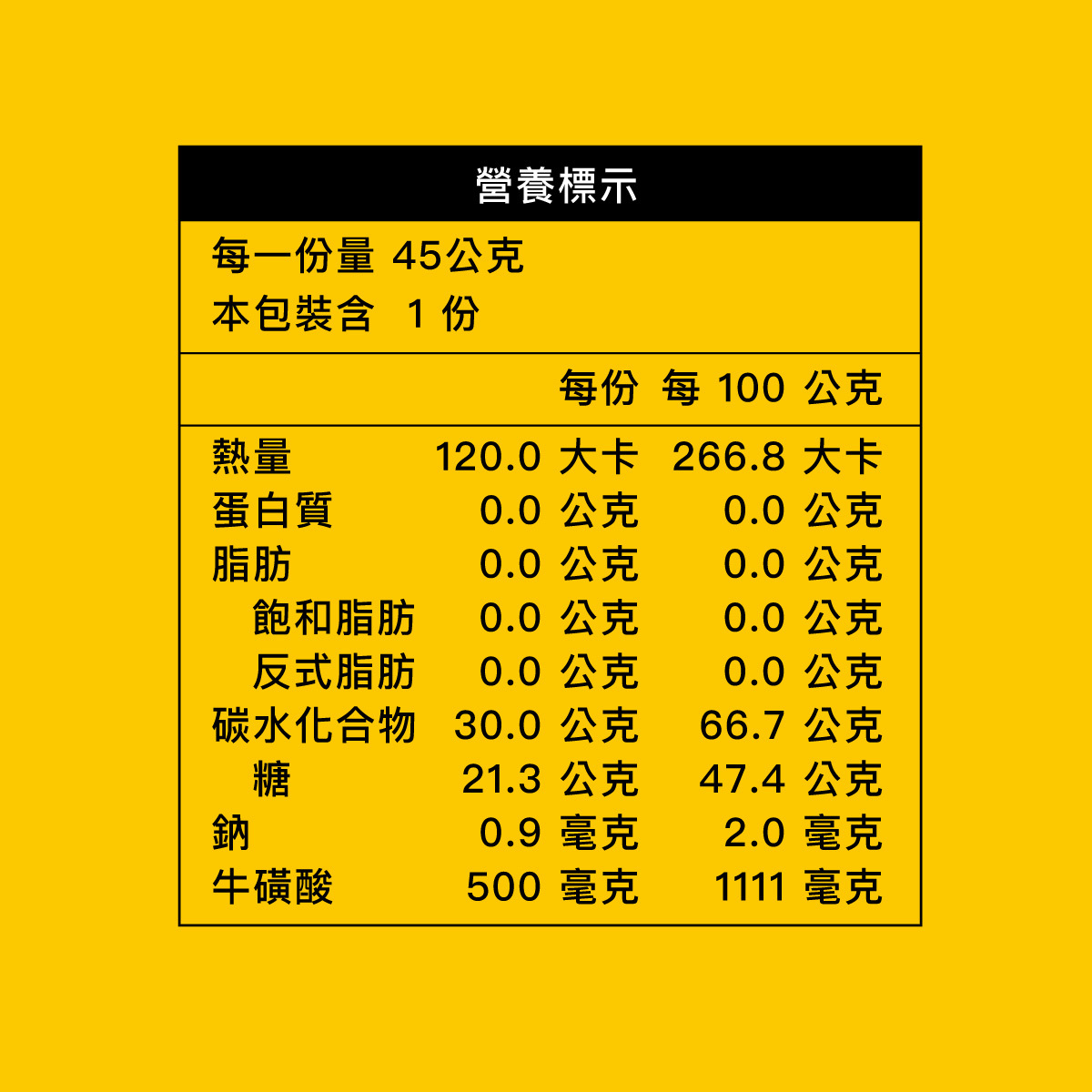 5.完美熱量/重量比,每包45公克淨重,給你完整30公克碳水化合物,120大卡熱量