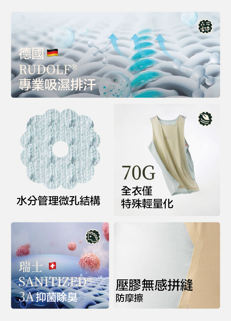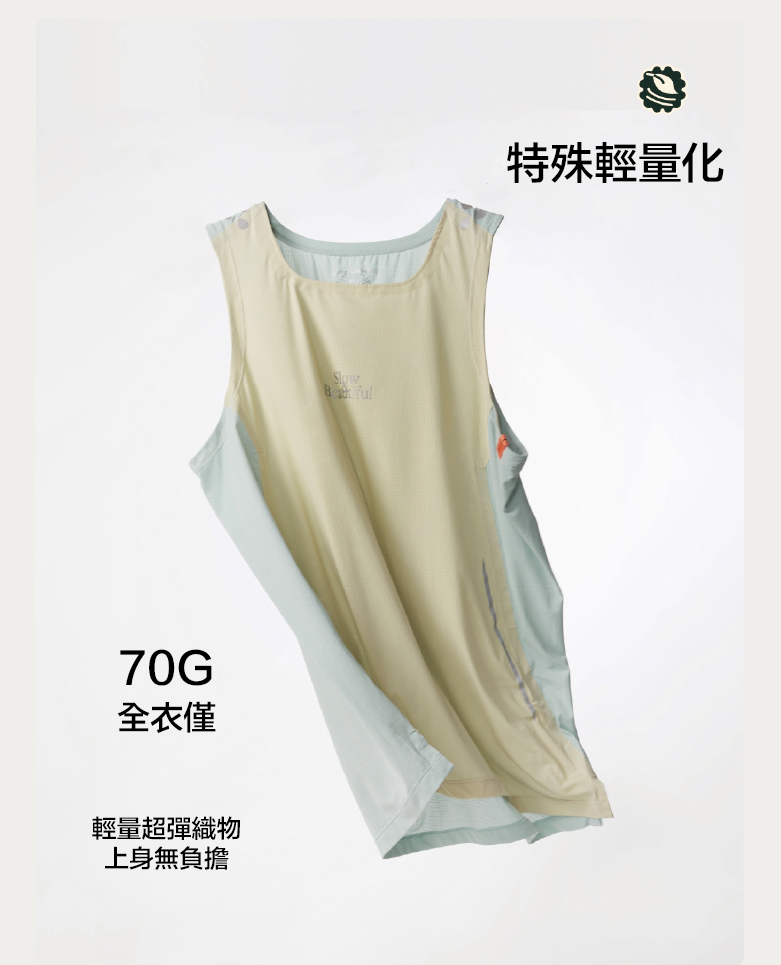 輕量透氣、吸濕排汗的跑步背心,由 HOLOL™ 微孔尼龍針織面料製成。具有濕度調節微孔,可吸汗、透氣,並具抗菌特性。超輕量且高彈性,重量僅 70 克,帶來無負擔的穿著體驗。