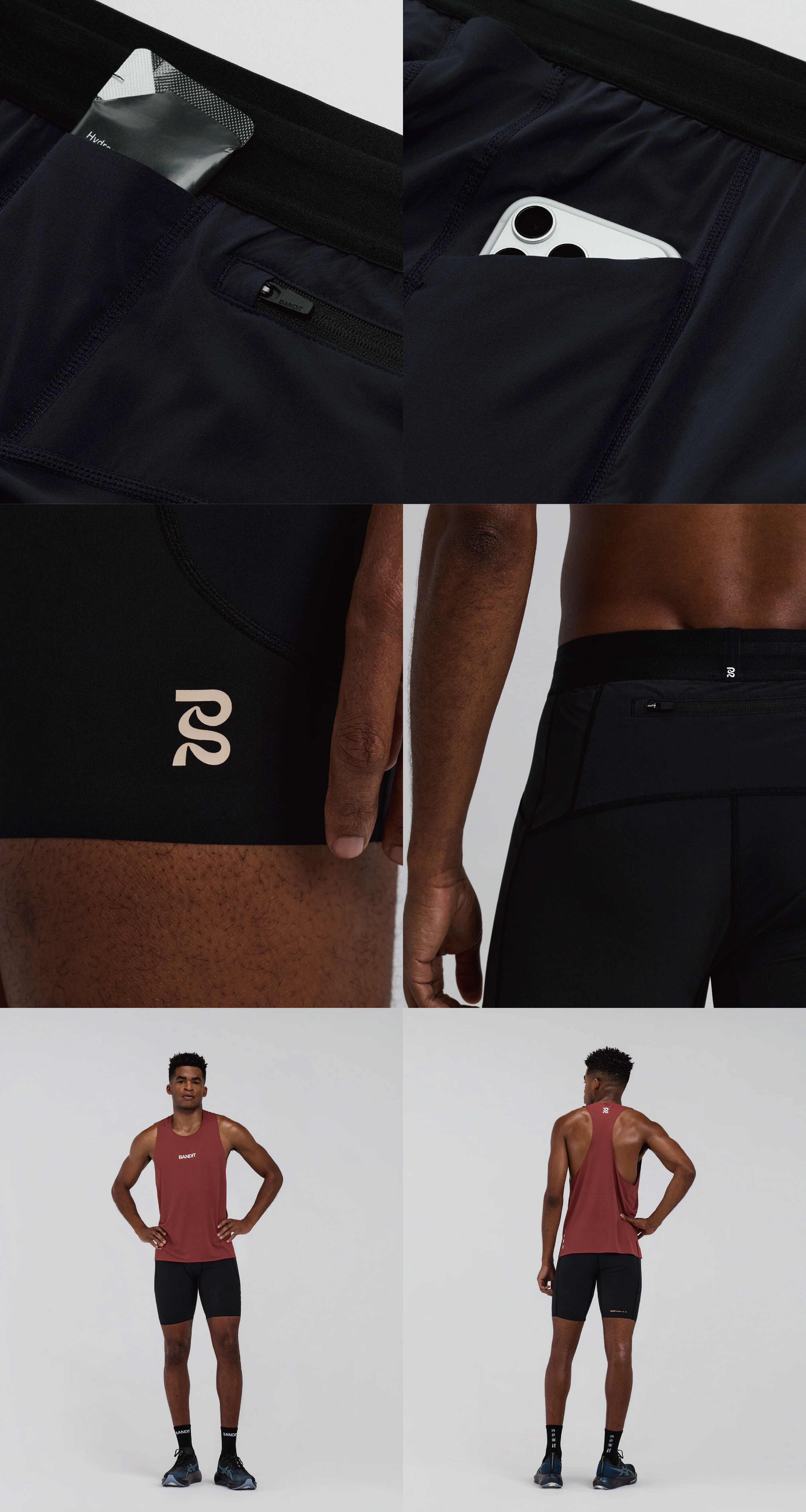 配置 五口袋收納系統,滿足跑動中的補給與隨身物品需求。客製品牌抽繩細節搭配全身反光標誌設計,兼顧機能表現與夜間能見度。