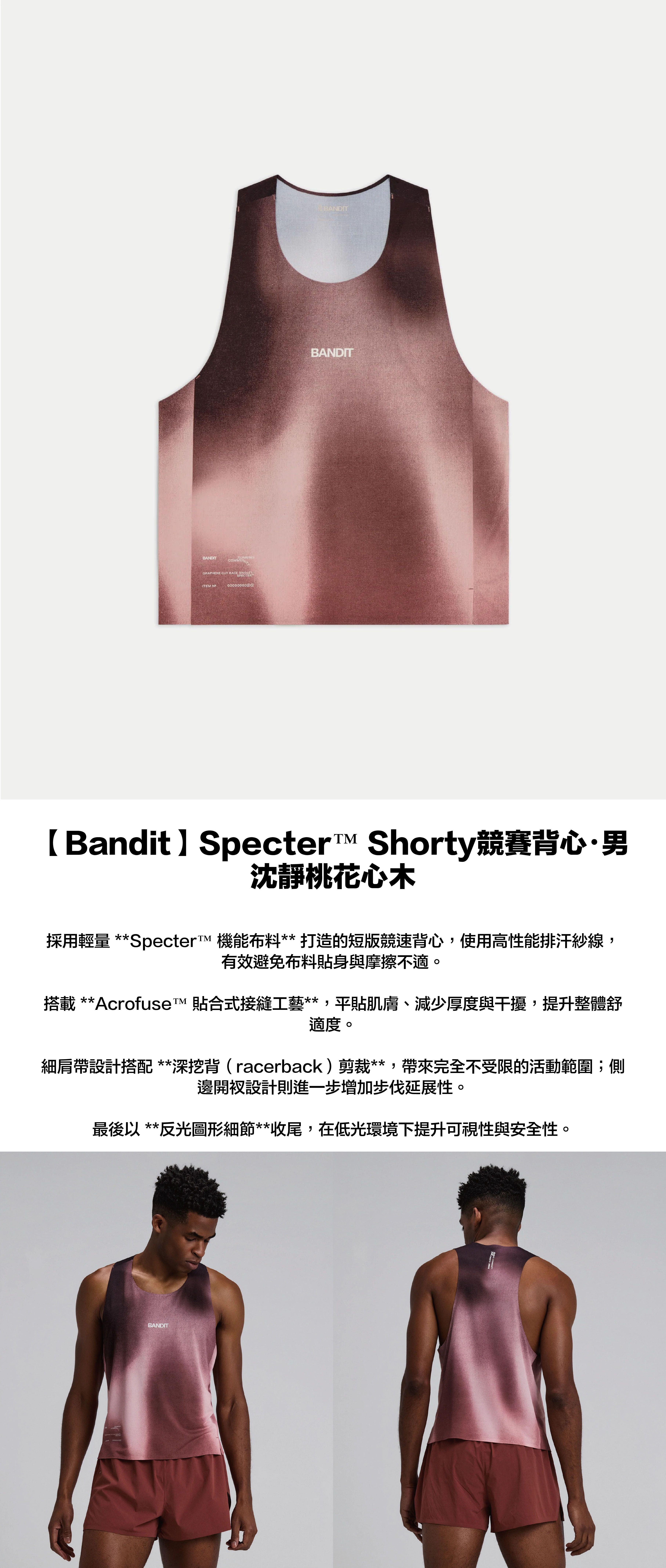 前後拼接面板加入反光圖像細節,兼顧賽事機能與夜間能見度。
