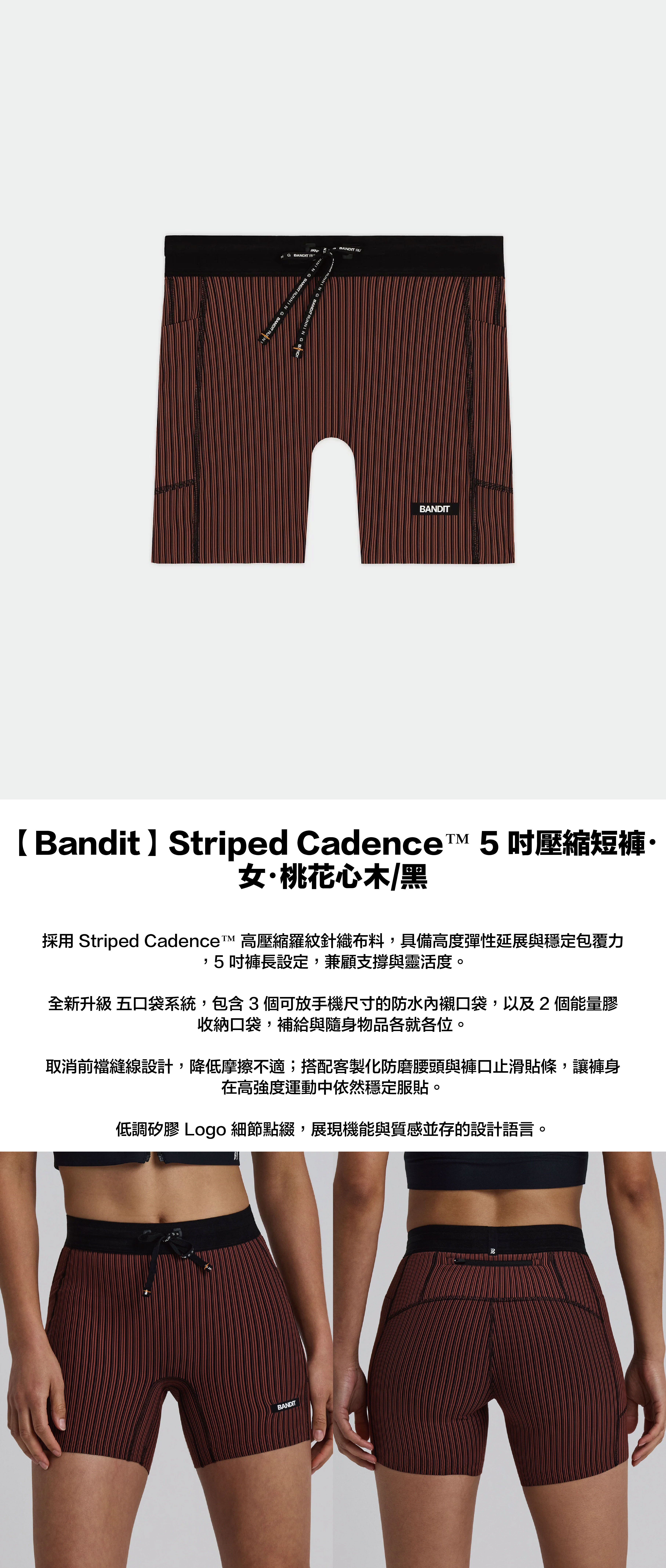採用 Striped Cadence™ 高壓縮羅紋針織布料,具備高度彈性延展與穩定包覆力,5 吋褲長設定,兼顧支撐與靈活度。