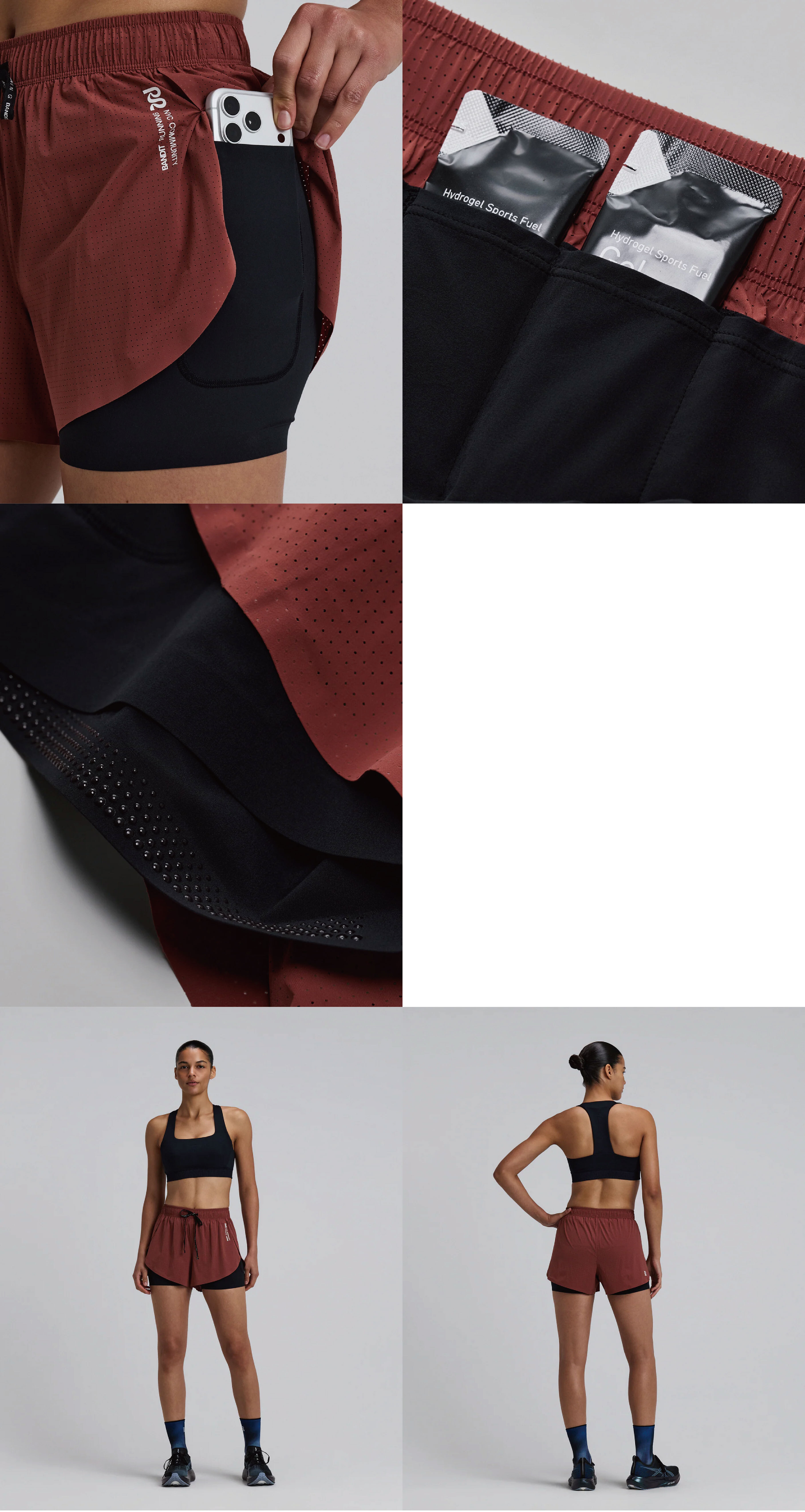 設有防水手機口袋、能量膠口袋與鑰匙扣環設計,收納機能完整到位,靈活應對各種距離與情境。