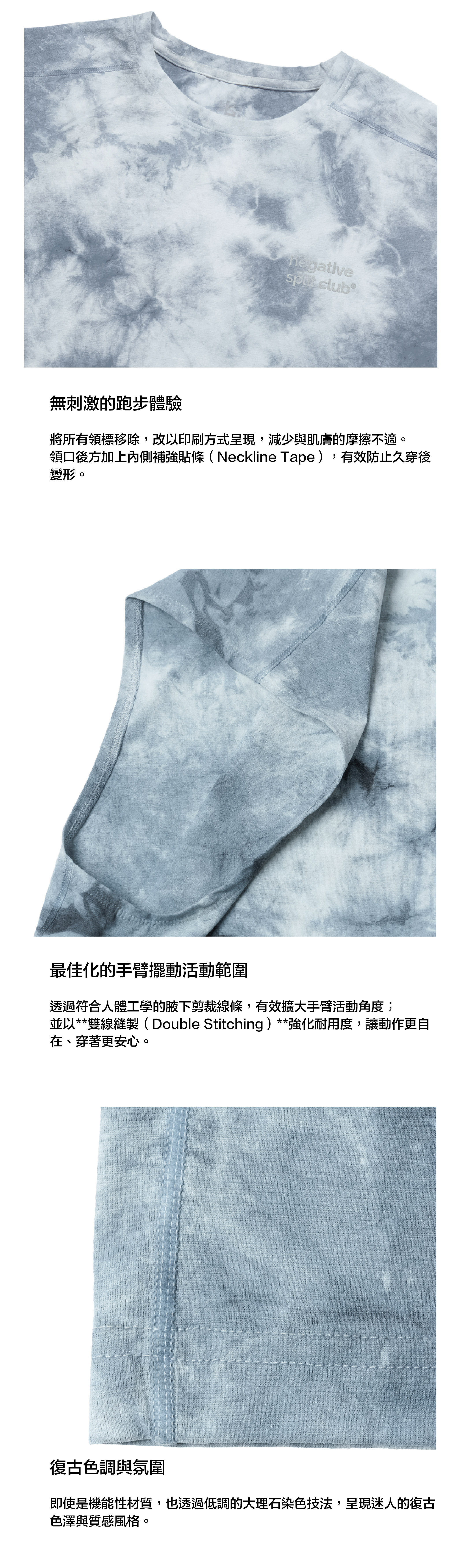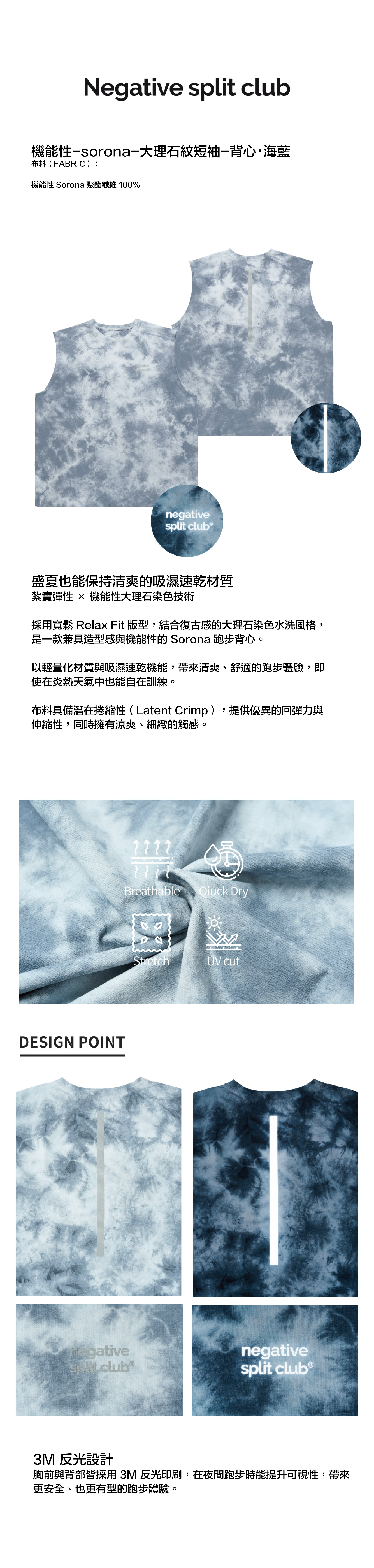 採用寬鬆 Relax Fit 版型,結合復古感的大理石染色水洗風格,是一款兼具造型感與機能性的 Sorona 跑步背心。