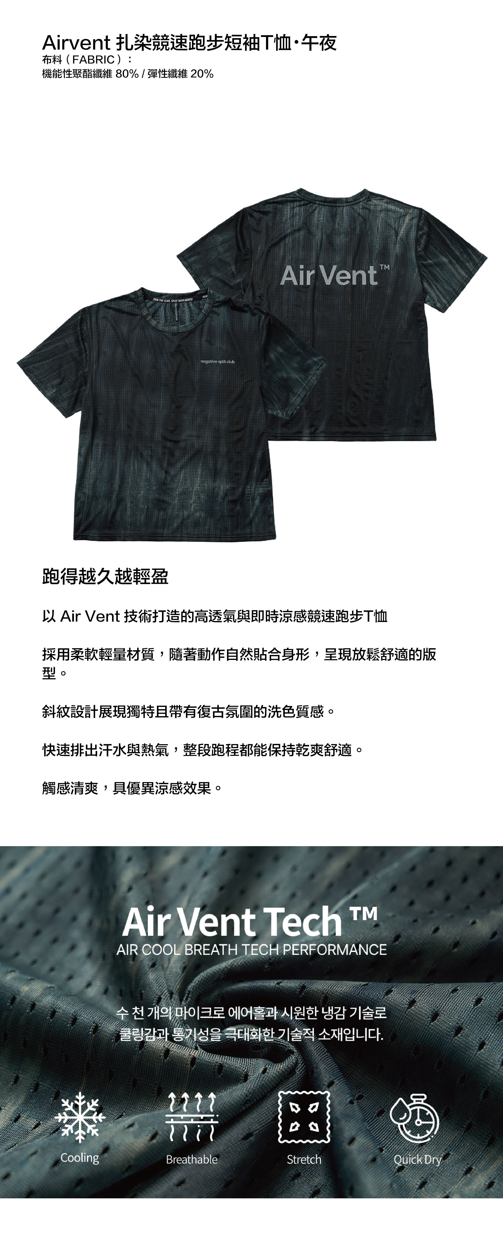 以 Air Vent 技術打造的高透氣與即時涼感競速跑步T恤