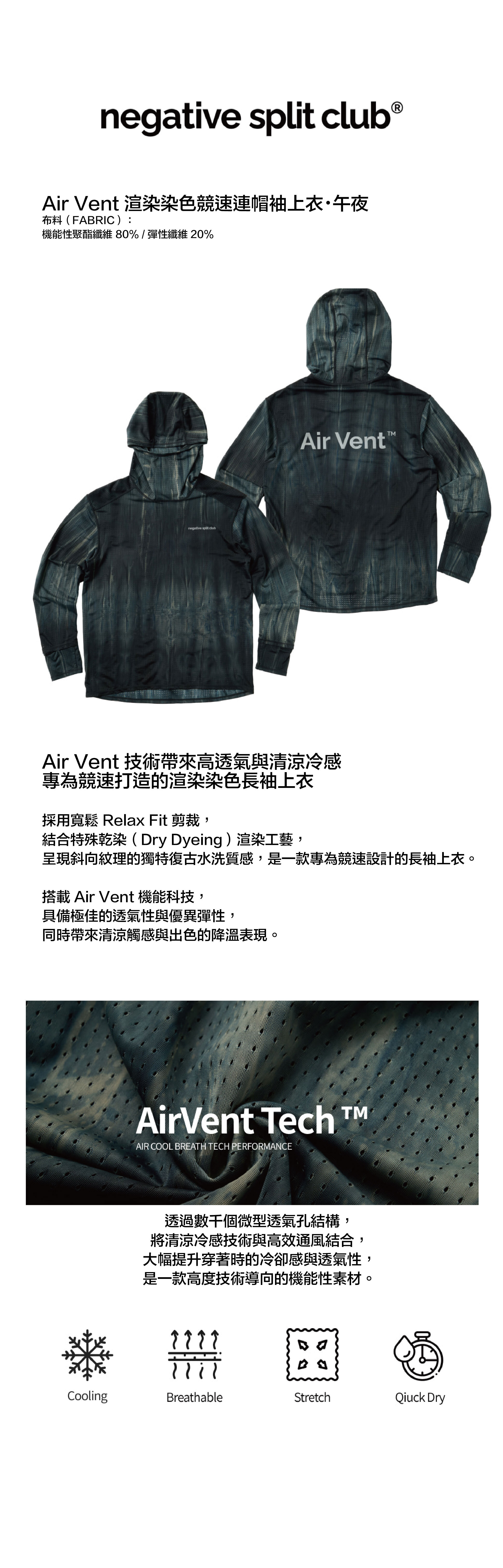 【Negative Split Club】Air Vent 渲染染色競速連帽袖上衣・午夜