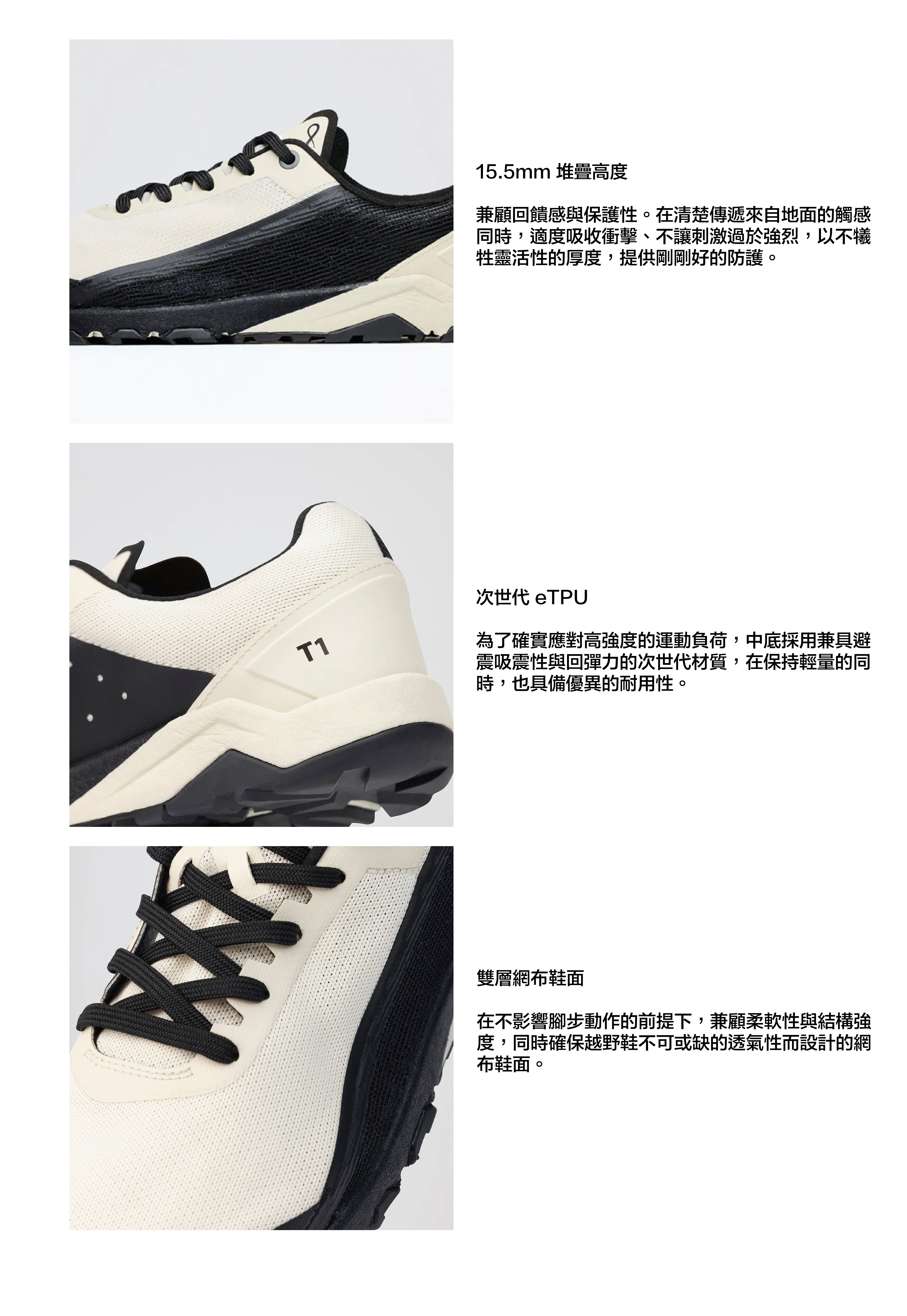 Yama T1 男款是一雙多功能越野跑鞋,能隨著你的步伐前進,無論山徑帶你走向何方都能從容應對。無論是跑步、健行,或只是自在探索戶外,Yama 都能提供全天候的舒適感與穩定抓地力,是你在各種山徑活動中唯一需要的一雙越野鞋。