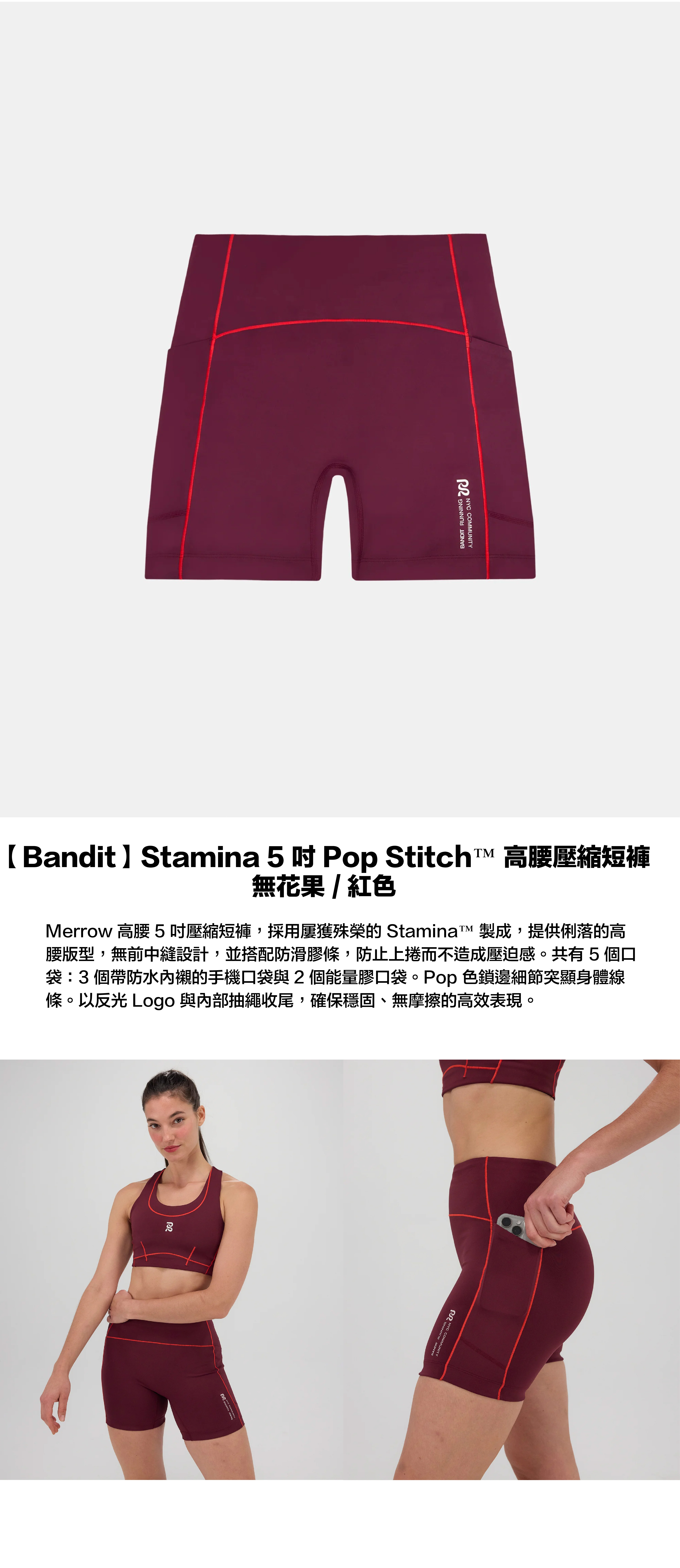 Merrow 高腰 5 吋壓縮短褲,採用屢獲殊榮的 Stamina™ 製成,提供俐落的高腰版型,無前中縫設計,並搭配防滑膠條,防止上捲而不造成壓迫感。共有 5 個口袋:3 個帶防水內襯的手機口袋與 2 個能量膠口袋。Pop 色鎖邊細節突顯身體線條。以反光 Logo 與內部抽繩收尾,確保穩固、無摩擦的高效表現。