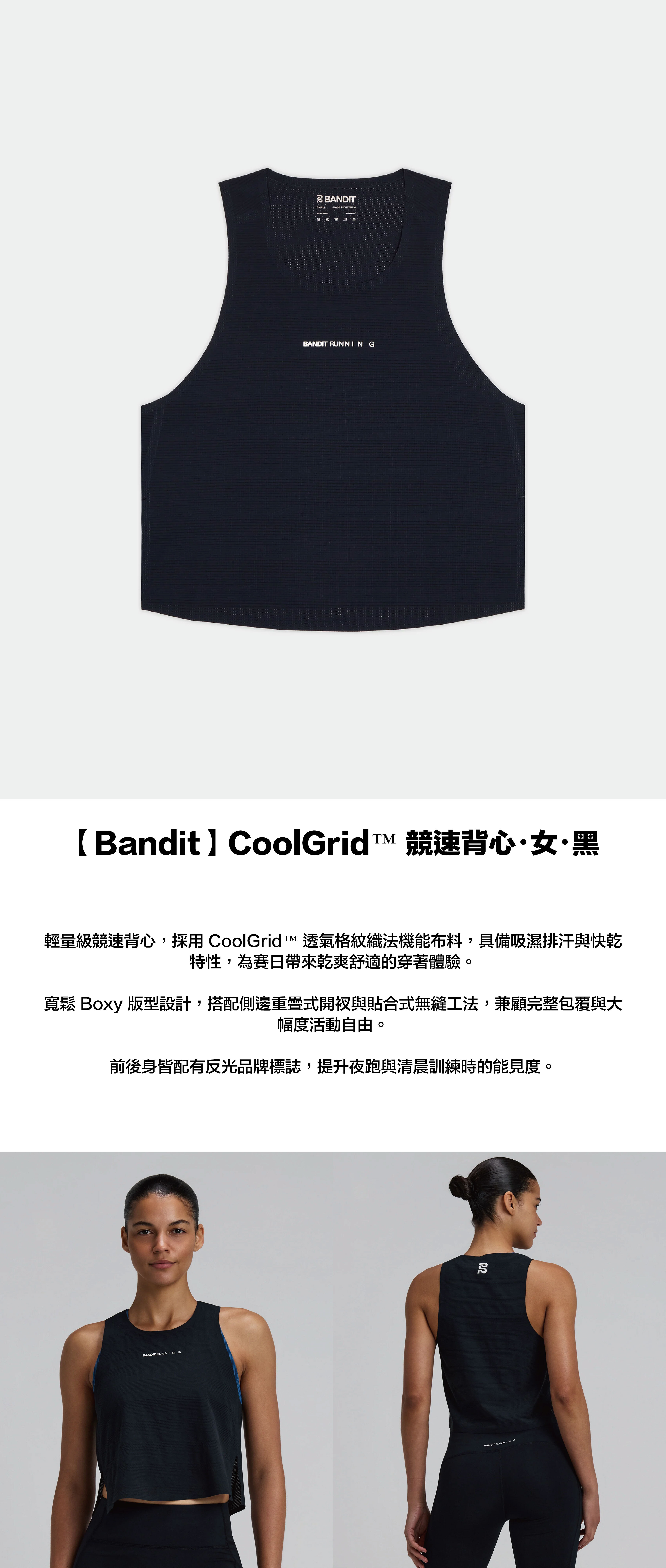 輕量級競速背心,採用 CoolGrid™ 透氣格紋織法機能布料,具備吸濕排汗與快乾特性,為賽日帶來乾爽舒適的穿著體驗。