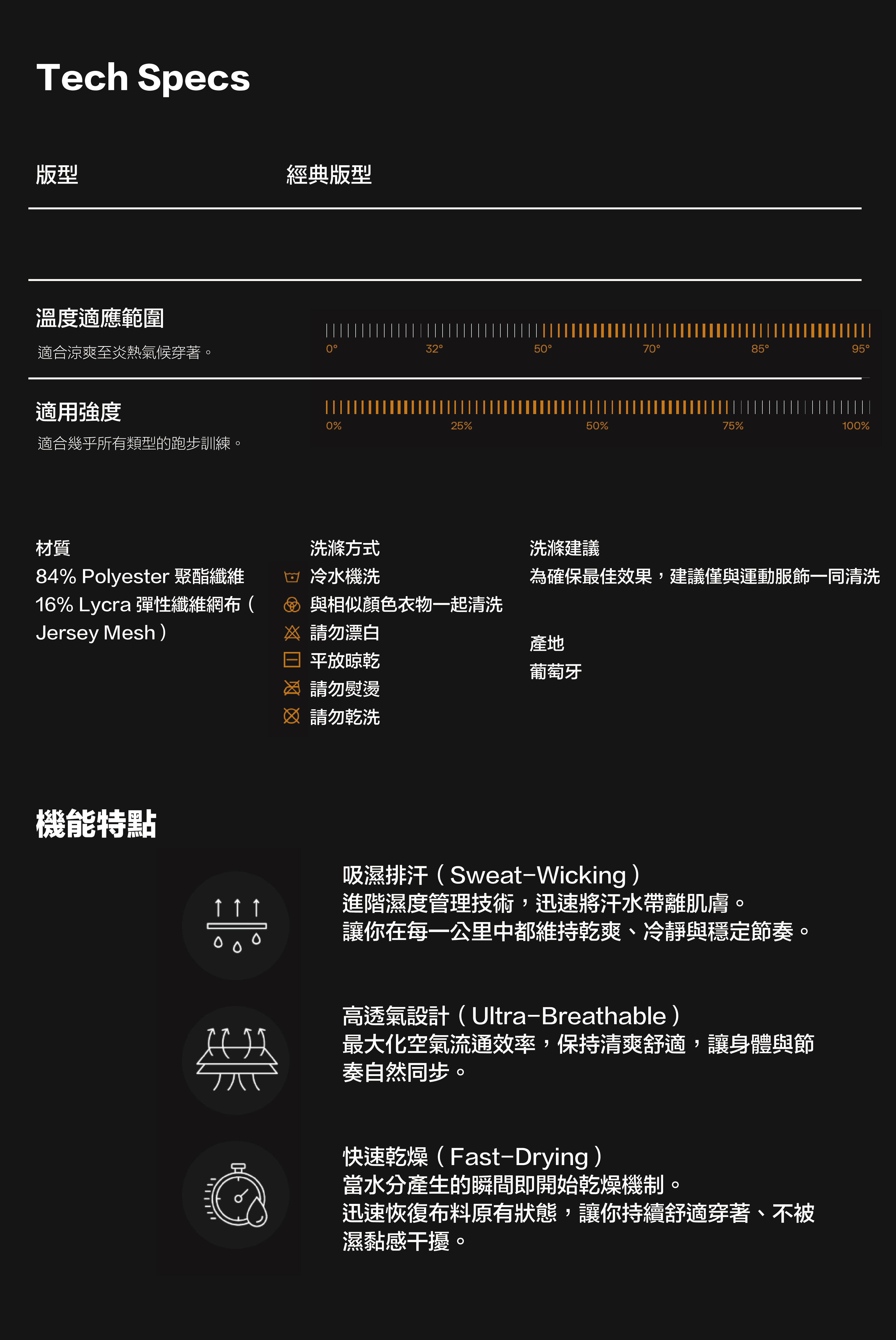 圓領剪裁搭配背部中央平鎖縫線設計,提升舒適度與耐用性。無論是場地、道路、越野訓練,或日常著用,都能自在切換。